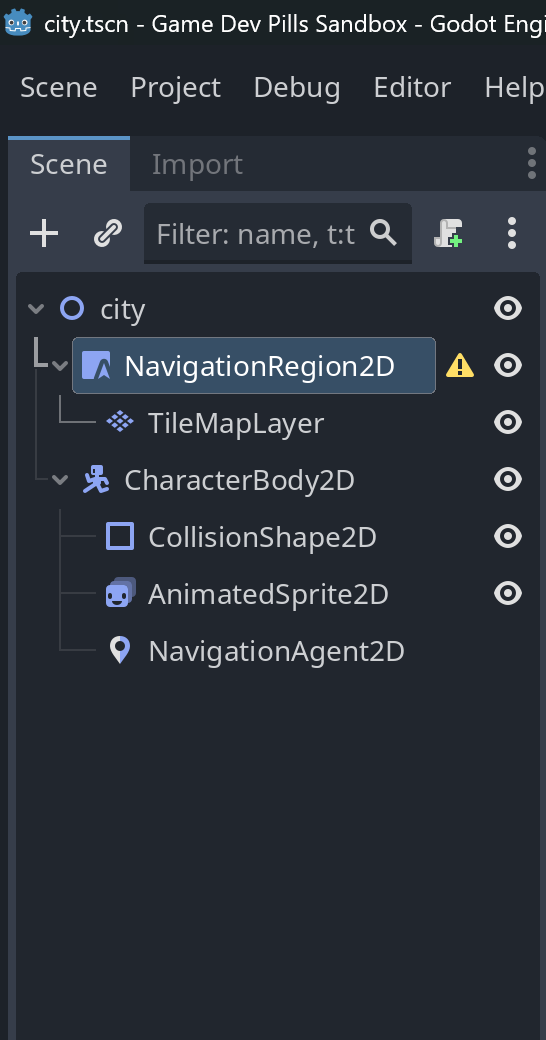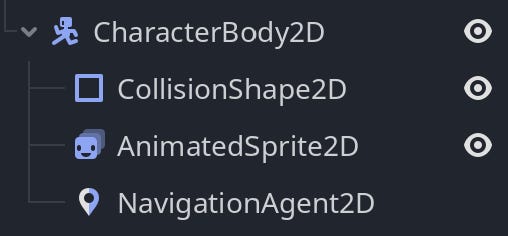 CollisionShape2D– for detecting collisionsNavigationAgent2D– think of this as the GPS for your characterAnimatedSprite2D– to animate your tiny citizen!Use 16x16 resolution assets (download here)