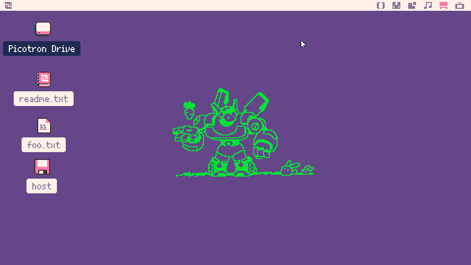 Host Mode enabled. We can easily transfer files between Picotron environment and our host machine (Windows, Linux and MacOS)
